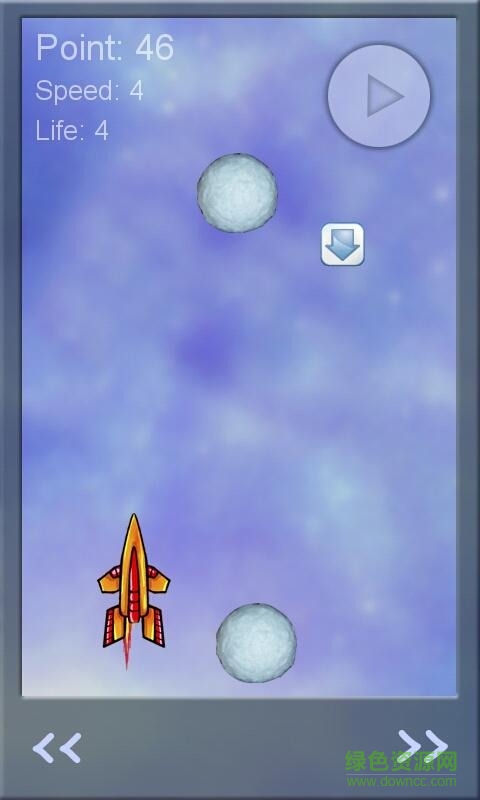 《宇宙飞船空间旅行者 Spaceship - space runner》这是一款太空旅行类的飞行游戏。你是太空旅行者,你飞一个陌生的星球的表面上。有许多危险:陨石朝着你的飞船,他们能打倒你。只有快速反应,让你用自己的方式通过这些陨石。飞船的速度也在逐渐增大。