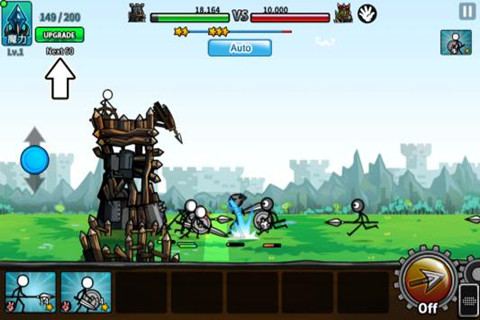 主城配有强大的弩箭抵御敌人,魔法祭坛生产各类火柴人英雄进行进攻。