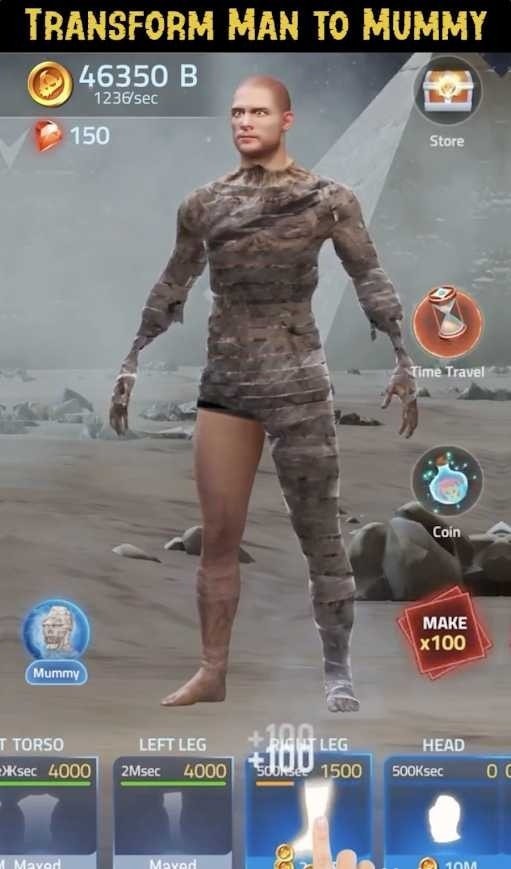 1、点击屏幕重组100万个细胞,身体骨架还有肌肉都可以慢慢生长出来;