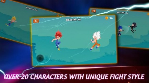 1、火柴英雄竞技作为一款十分激烈热血的火柴人题材的动作格斗手游,游戏当中玩家将会控制火柴人进行战斗,火柴人全部都是七龙珠当中的角色外貌,还有着七龙珠当中的技能,玩家可以不断的练习不同的连招在进行挑战,可以选择不同的火柴人进行激烈的战斗