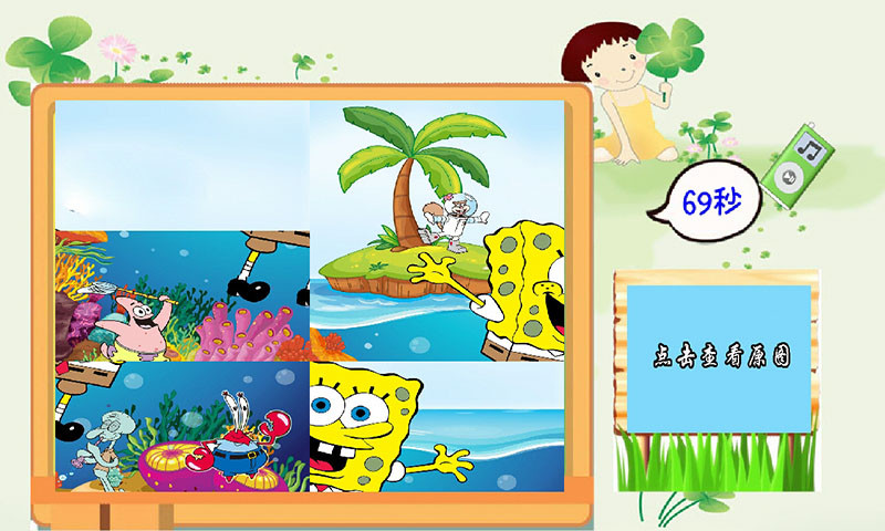 2、海绵宝宝拼图作为一款趣味十足的儿童教育游戏,其实这款游戏不知道小孩子玩的话能不能跟的上,这款游戏就算有些成年人玩到后面都不一定能够正确的按对。而且游戏中会越来越复杂还会加快速度。感兴趣的玩家赶快下载这款游戏吧