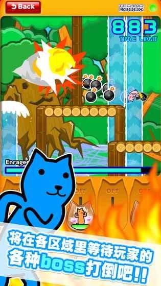 与至今的库达系列相同,操作非常简单!基本上只有跳跃键!若看到水晶苹果排成一排,那就是跳跃的信号,在适当的时机按下绿色的跳跃键吧!