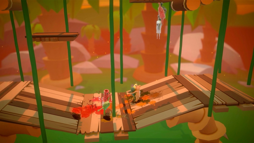 这款游戏简直是平台格斗类游戏界的清流,角色都是一群萌萌的橡皮糖,打斗场景看起来也是十分的恶搞,还有游戏的场景里经常会有些意外的惊喜,比如说地板塌陷了。。然后你就掉下去了,当你看到十几块儿橡皮糖缠斗在一起,横飞的不是血液而是糖浆,你会觉得这款游戏还是很有趣的~