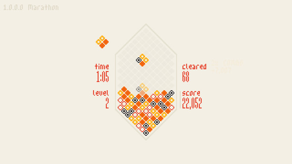 《混浊》(Mixolumia)是davemakes制作发行的一款独特像素风格的积木清楚益智游戏。混浊有着闪烁的视觉效果和迷人的音乐随着你的游戏而变化,钻石块在宝石形的棋盘上一起滑动,并在闪闪发光的连锁反应中爆炸。