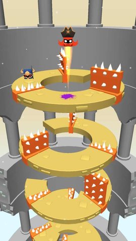 2、螺旋塔英雄作为一款超好玩的跳跃休闲手游,在游戏中你需要凭借自己良好的反应能力来完成一场有趣的跳跃之旅,注意在跳跃的过程中千万不要碰到螺旋柱上的机关,不然你的挑战就失败了,在螺旋柱上还有很多怪兽在等你来挑战,越往后遇到的怪兽越多,所以一定要保持警惕,玩法有趣,喜欢的小伙伴快来吧