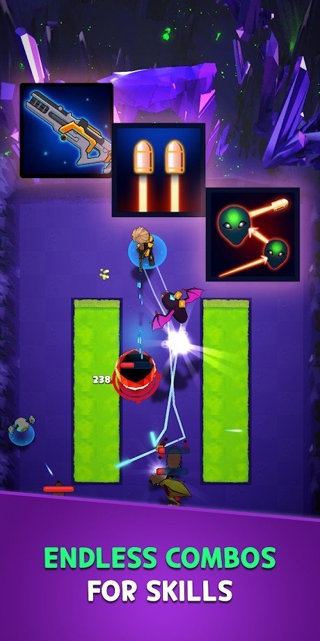 1、通过射击怪物来拯救世界的人,玩家们需要拿出自己的全部实力。2、道具的出现,增加你的战斗威力,还有移动的的速度,合理使用。3、大量的关卡和各种不同的武器自由选择,让你的体验更加的丰富。