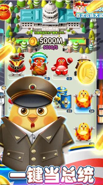 2、我要当总统,一款轻松赚金币的合成游戏。在这里不断拖拽合成相同角色提升等级就能赚取超多金币,100金币≈1元,1元提现,超给力