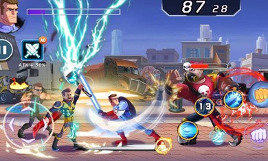 船长英雄,蜘蛛绳英雄,钢铁超级英雄,锤子英雄等等等待您的召唤战斗;