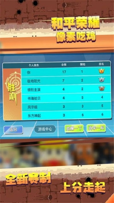 4、和平荣耀像素吃鸡,是一款采用了大方块的像素射击手游。游戏的画面虽然简单,但是却拥有着超棒的射击手游。各种各样的吃鸡竞速模式也十分丰富,而且大大简化了操作,让小白玩家也能轻松吃鸡哦
