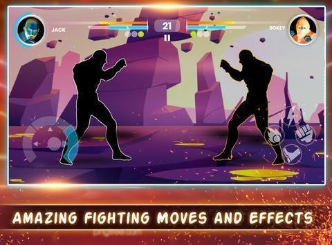 游戏中玩家要使用几个虚拟按键来控制你的影子武士去战斗,你要灵活的利用你的技能,飞踢,勾拳,还可以发射火焰给你的敌人来一个大招,将你的敌人打败,继续去挑战下一个敌人。在这款游戏中有着各种各样不同的格斗英雄让你肆意选择,海量场景擂台让你肆意加入,选择你心仪的角色,每一位角色都有着专属的技能以及强大的属性,不断地使用强力的连招以及必杀技击败对手,让你成为强大的格斗大师,获取海量丰厚的奖励报酬。