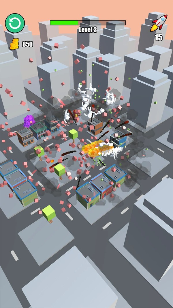 2、枪击爆破游戏,是一款休闲火柴人射击游戏。画面效果简约自然,在这里控制你的火柴人进行趣味的闯关,还能使用各种武器破坏城市中的各种建筑哦。十分发泄自己的情绪哦