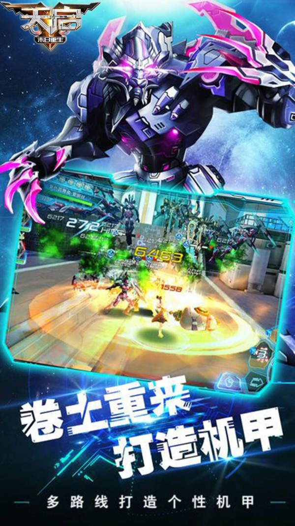 2、末日重生天启游戏精致唯美科技感十足的美术画面,它采用了未来射击机甲魔幻般角色冒险类游戏,各式各样丰富的机甲供你选择,给你前所未有的刺激战斗快感,不要等待要游戏就现在下载体验末日机甲吧
