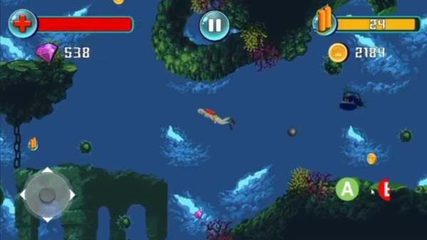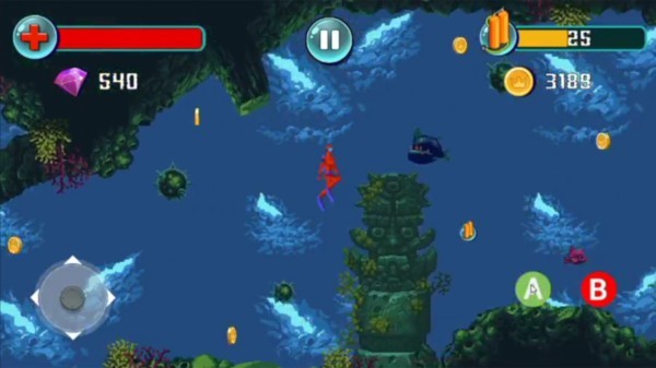 2、在大海中收集金币,同时你还要避开炸弹,千万不能受到任何攻击;