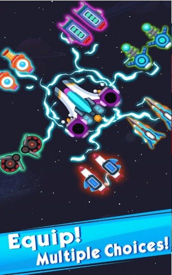 2、击败强大的BOSS获取金币并升级您的飞船,启动您的飞船引擎,消灭更多敌人。