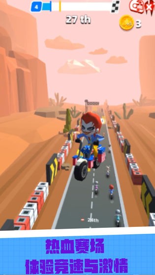 2、《摩托我最溜》是一款炫酷刺激热血好玩的趣味休闲赛车游戏,游戏采用超级吸睛的动漫精致画风,这里有很多不同类型的关卡等待玩家的挑战。超级畅爽的竞速,简单操控手法都是极为流畅的,感受到其中风驰电挚般的对决,一路上不断的狂飙,展现出你的实力