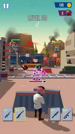 4、这款游戏的画质是十分有意思3D立体建模,画面不是十分的卡通也不是写实。游戏当中还是十分的考验玩家们的射击技术的,会有许许多多不同的敌人来对玩家发起猛烈的进攻,幸好有着障碍物可以帮忙抵挡攻击,要找到恰当的时候再出去进行射击,消灭所有的敌人,还有着次数限制的大威力的特殊武器,一定要把把握好释放的机会