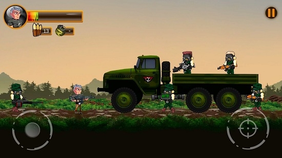 反对你的是整个敌人的军队:坦克,吉普车,士兵,僵尸,火炮和其他。使用不同类型的武器并摧毁所有敌人。在你使用的几个任务中,一把吉普车用机关枪。玩家可以选择角色进入游戏,男女角色的选择可以让喜欢这款2D风格动画的射击有了多种选择的余地。