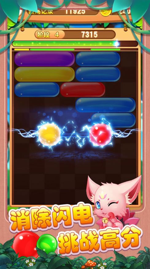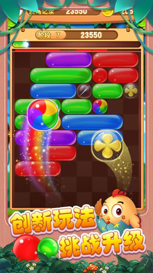 2、每当彩色条形状的泡沫落下时,玩家可以点击排除。