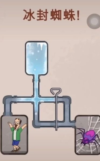 2、考虑好每一个开关的作用,将密室上方的液氮成功的引入蜘蛛所在的密室将它冻住。
