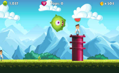 1、在冒险当中我们会遇到很多的水果,我们还会遇到许多丑陋的绿色怪物。