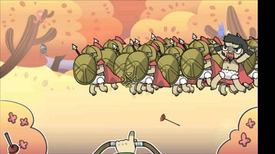 1、游戏的画风很可爱,背景音乐很独特,很多人物都是比较熟悉的角色从而经过处理,当被射中后的角色反应很搞笑。
