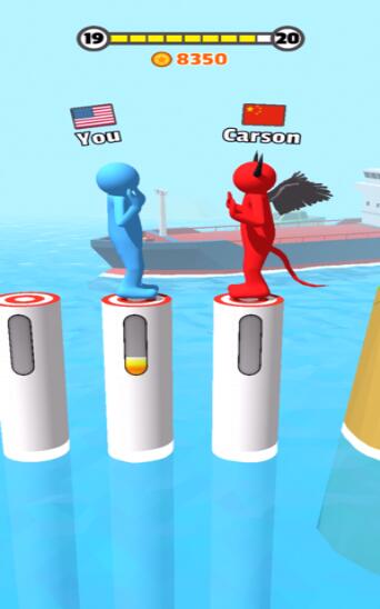 1、同时站在柱子上的玩家进行互推,采用策略战术来将对手推到,同时保证自己站稳。