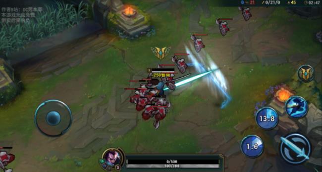 1、左右双向操纵,玩家在游戏中可以进行流畅的操纵,左边的轮盘玩家可以操纵快乐的风男在地图上自由行动,右边的技能释放栏则放了亚索的技能和普攻按钮,玩家可以尽情释放技能。大招也可以随时放送!