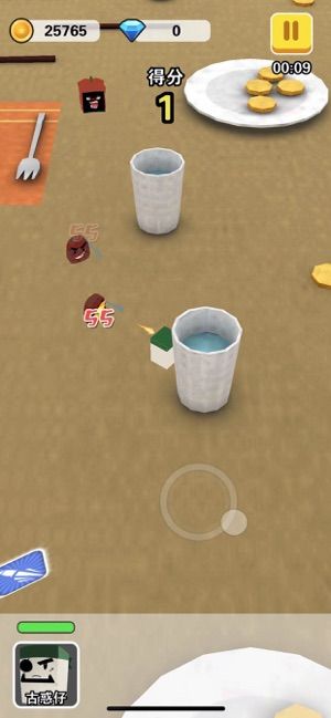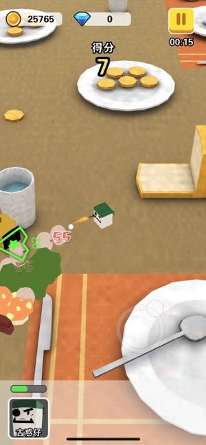 3、游戏中的场景是一张餐桌,玩家可以在这里遇到非常多不同种类的障碍物和食物,玩家可以利用这些来与敌人战斗。