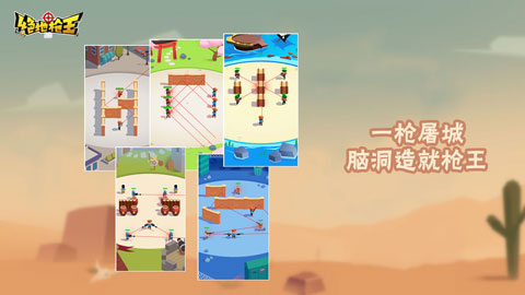 绝地枪王是一款充满趣味的休闲类射击闯关游戏。在游戏中,你需要去控制游戏中的角色来开始一场射击挑战,想要攻击到目标并不是一件容易的事情,发挥你的水平开始你的趣味闯关吧。玩家在游戏中作为一个枪法精湛的牛仔,需要去利用各种场景以及反弹的物理效果去消灭更多的敌人,游戏为玩家创造了许多关卡,可以用不同的方式过关一发子弹,运用各种物理效果以及道具击杀所有敌人,非常好玩的一款射击游戏,带给你不同的射击游戏乐趣。你需要在别人瞄准的一瞬间开出自己的子弹,让敌人都没有反应能力就被自己干掉了;其中还有一些易燃的东西,你将要去射击那些东西,让自己可以完美的应对一些不同的战斗。在众人同时射击的瞬间,看看自己到底能不能抢在所有人面前去射击到他们。
