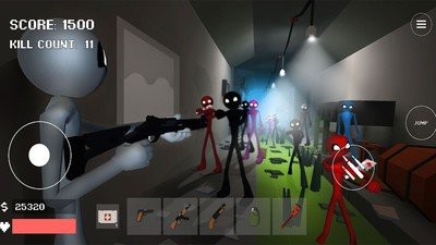 在这款游戏中你会遇到各种各样的僵尸火柴人,他们试图去杀死你,现在开始你的挑战,惊人的组合现代像素图形,第一人称射击游戏,火柴和僵尸产生很多的特殊效果!守在家里,建造你的防御,抵御危险的僵尸,这款游戏中你拥有大量的生存武器,购买他们。