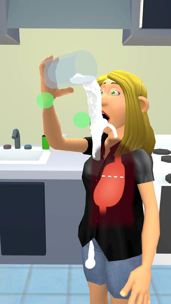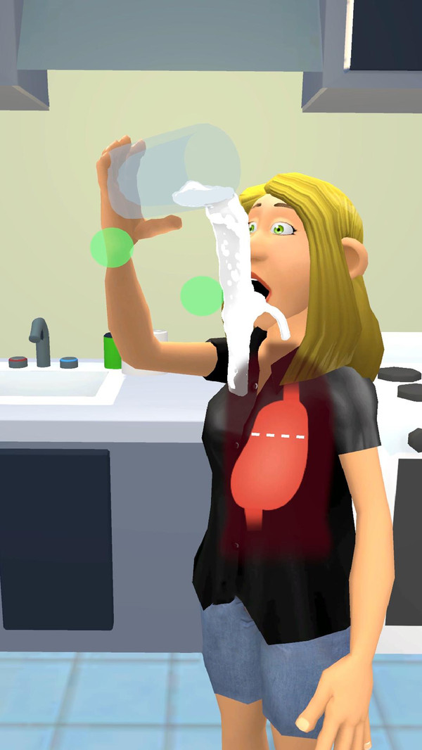 2、而游戏中的主角想要全部将其喝进去,这时候需要你进行操作了,点击杯子,使其倾斜,倾斜的角度不同;