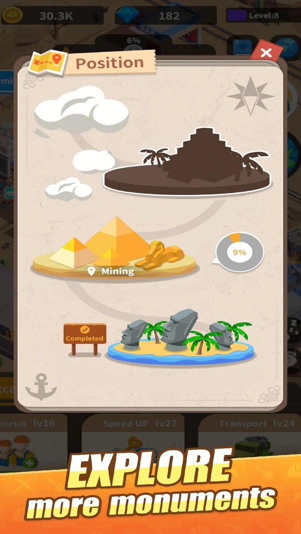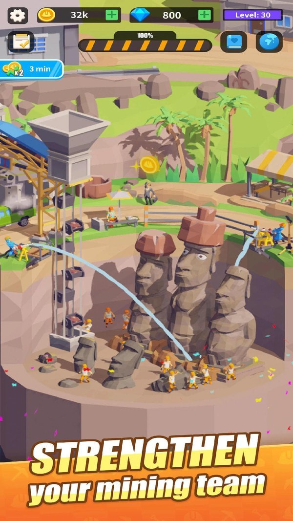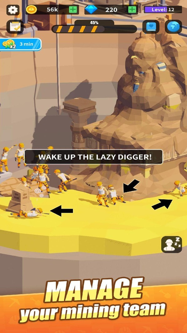 1、简单卡通的3D场景中,作为考古学家开始挖掘,体验优质的服务和技巧;