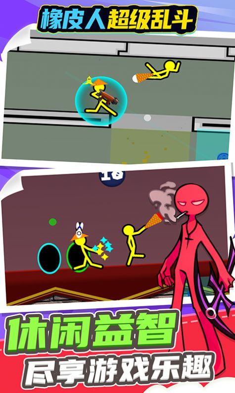 橡皮人超级乱斗安卓版是一款动作格斗类的游戏玩家在游戏中可以使用道具将自己的对手淘汰,赢得比赛的胜利,尽情展现你的实力,带来的体验感超级棒。