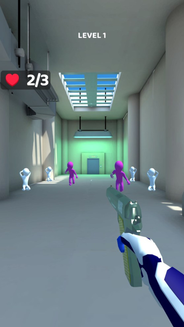 一枪一个头最新版是一款非常刺激的冒险射击类游戏,在这款游戏中玩家为了拯救被抓的人质独自前往敌人的秘密基地,你手中只有一把手枪,面对众多的敌人你需要精准的射击干掉它们,你的生命是有限的最多只能被敌人攻击三下,所以尽量别让敌人靠近你。