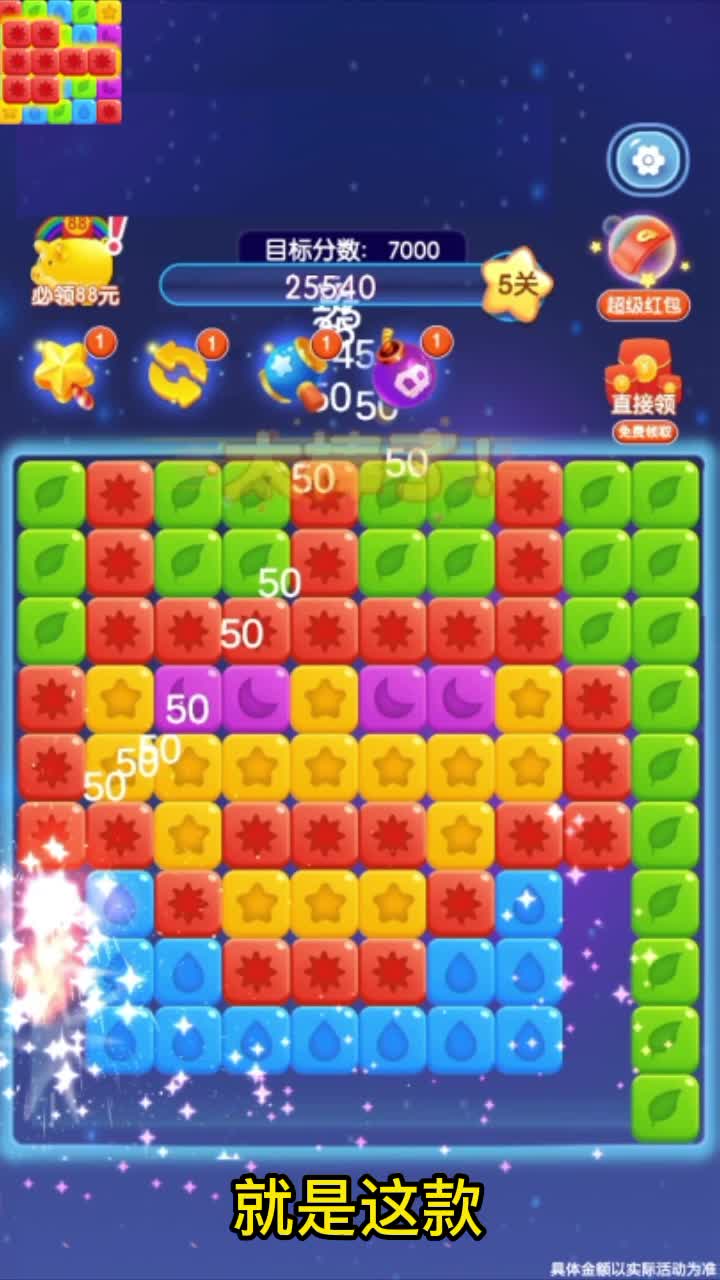 1、玩法和消星星都是一样,消除越多红包就得越多,上百种不同关卡可以尽情的挑战;