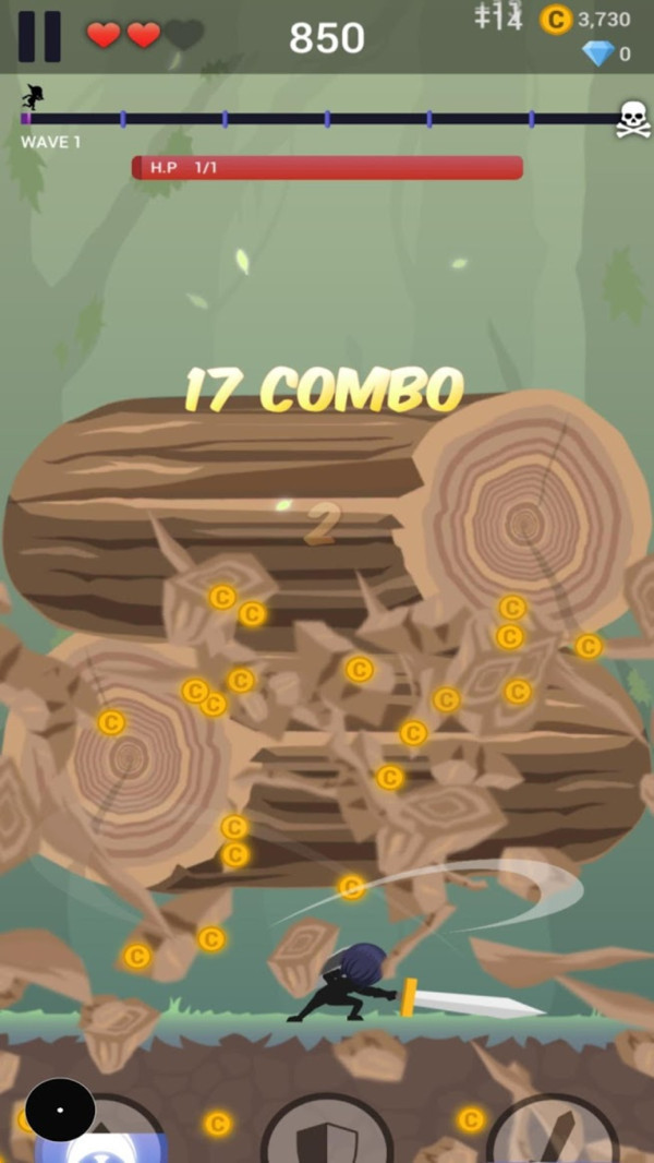 伐木火柴人最新版是一款非常有趣的动作闯关类游戏,这款游戏的玩法非常的有趣,在这款游戏中玩家操控着火柴人手持长剑随意的挥砍,将游戏中的木头全都劈开,当你连击的次数越多你的得分也就会越高,还有一定的几率会掉落金币哦,把掉落的金币去都收集起来千万不要错过了哦。