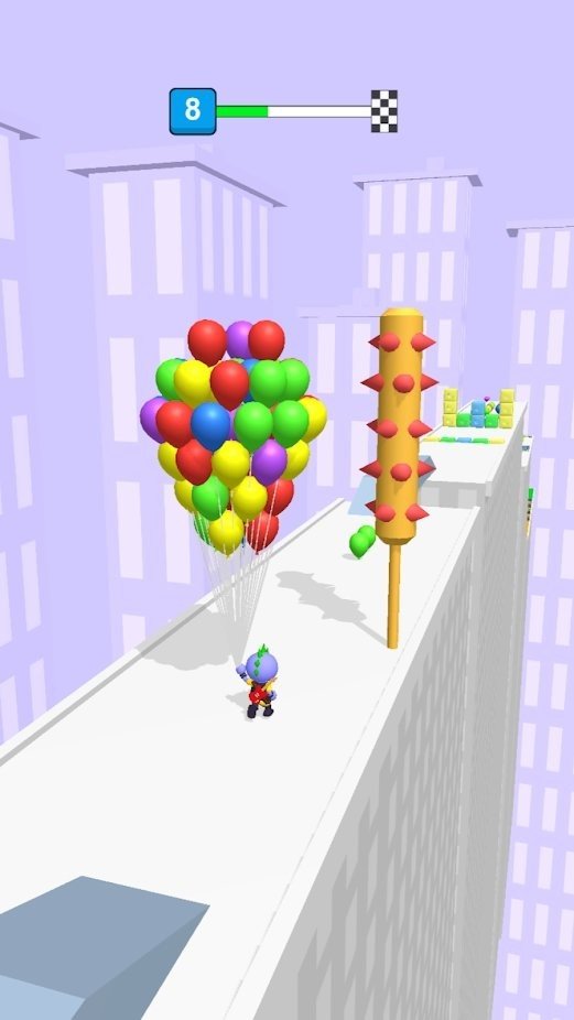 2.收集气球并从一个屋顶去到其他的地方,中途还有更多的玩家和你一起去不断的进行解锁的,通过拾取到更多的气球让玩家的血量和速度不断的增加。