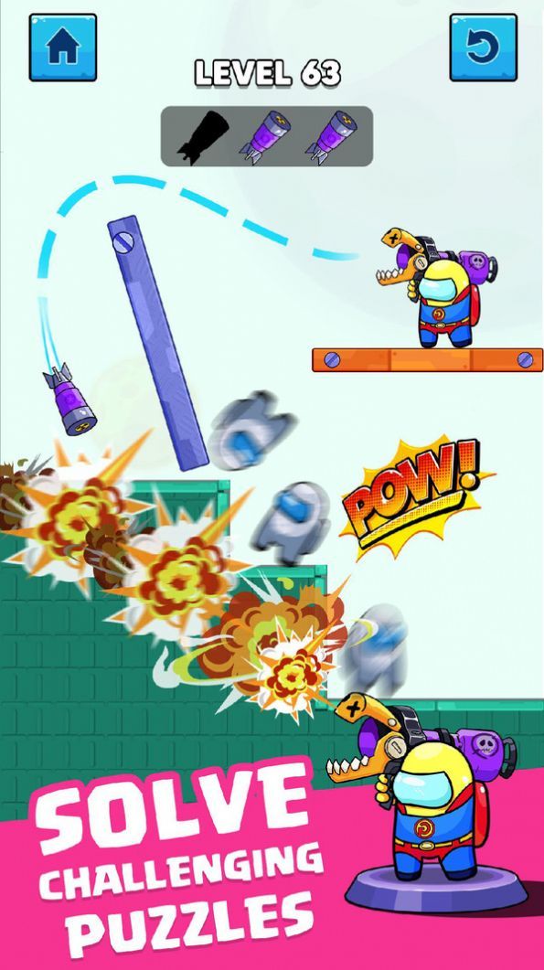 冒名顶替者火箭战安卓版是一款有趣且具有挑战性的益智游戏不过每一个关卡能够使用的火箭炮弹是有限的,所以玩家是可以慢慢思考找到最佳通关方式的,扛起我们的火箭炮将关卡内的冒名顶替者给消灭掉。