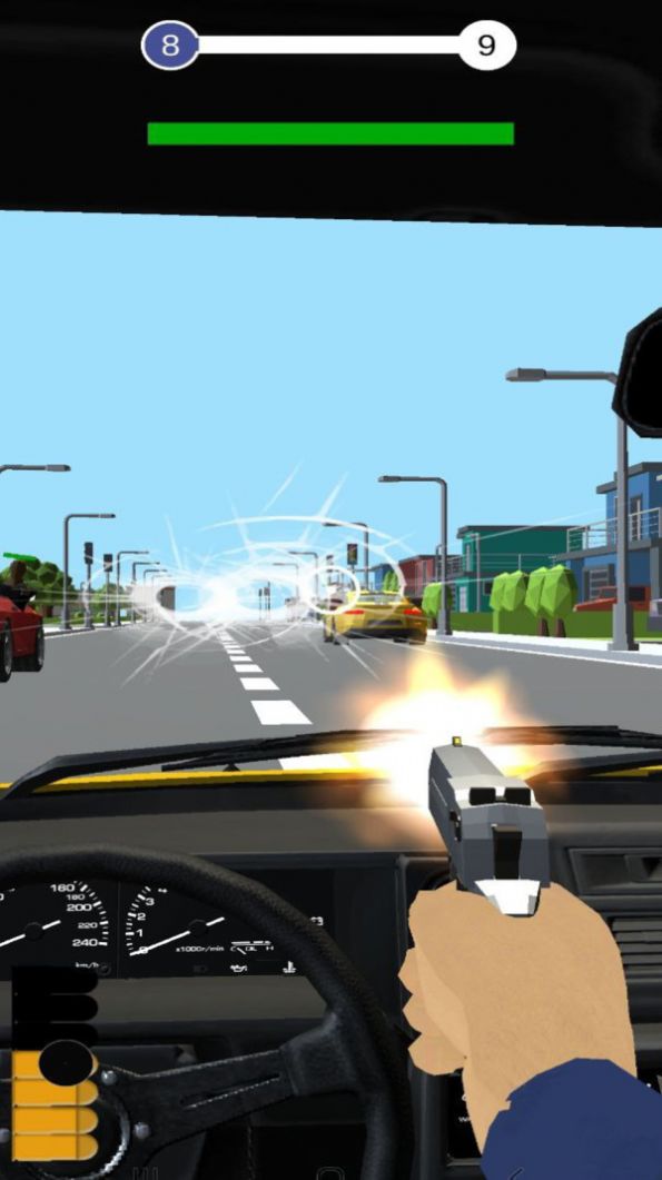枪战追击游戏是一款全新的射击冒险游戏。犹如进入到了电影片场一般,我们将在车内与匪徒展开追击之战,车速极速行驶的同时,还要小心匪徒的反击,使用自己的精妙操作避开子弹,同时找准时机将匪徒给击败,超多关卡挑战等你去完成!