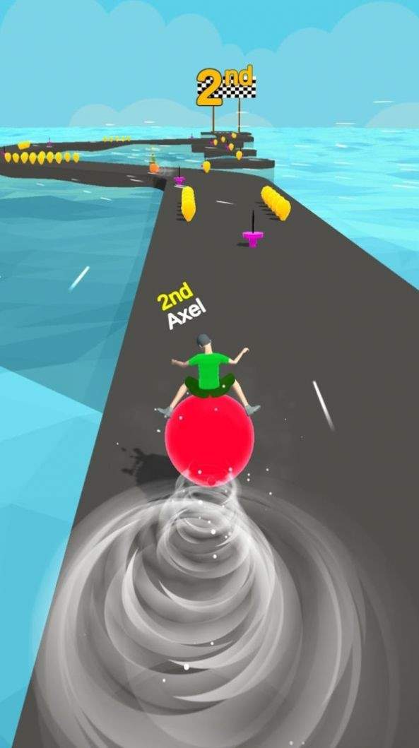 3、收集更多气球可以给自己的球加气,更快的速度冲向终点。