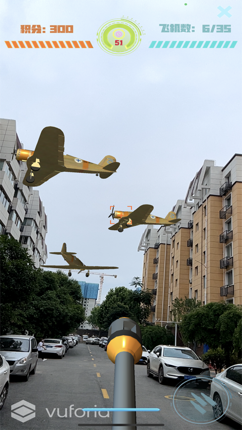 1、AR打飞机,玩法很简单,基于AR技术可以在空间中使用火炮攻击来袭飞机;