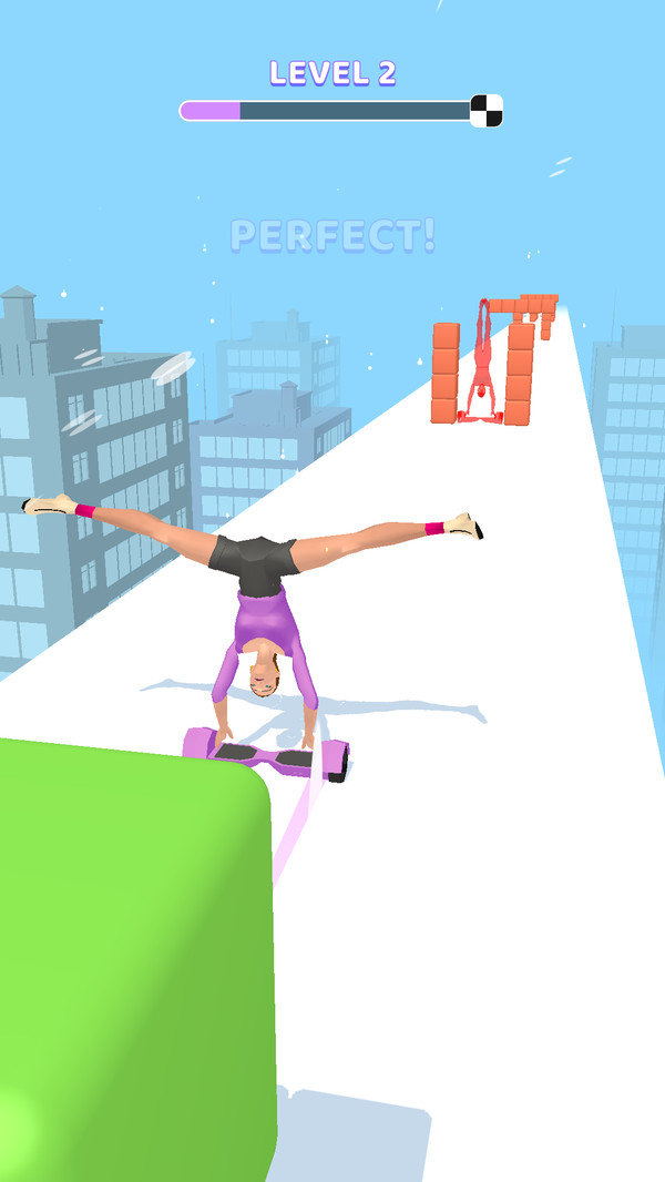 2、滑冰角色的设计十分酷炫,各种绚丽的动作设计都是依靠你的方块移动来实现的。