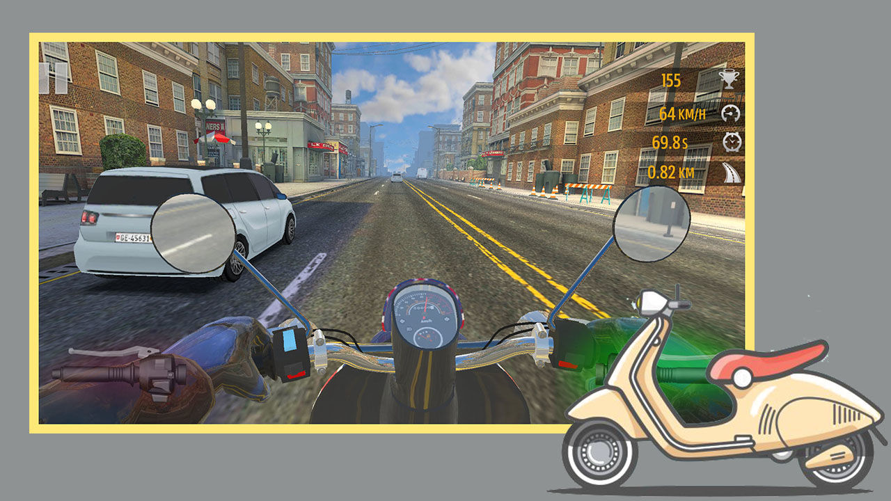 3.动画卡通风格的平面设计为游戏增添了乐趣,精美的平面设计让摩托车驾驶更加精彩!