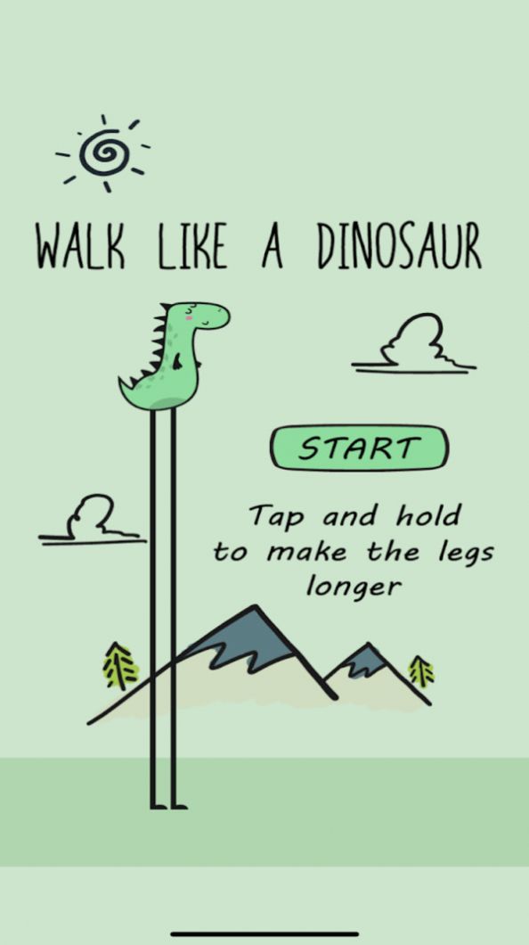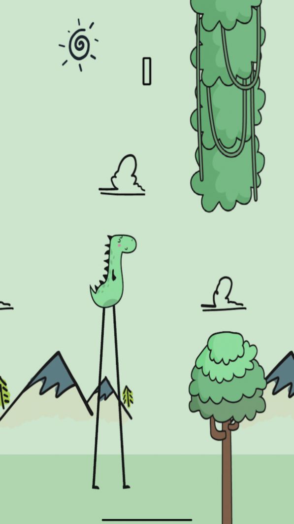 走得像只小恐龙游戏是一款有着蠢萌画风的休闲小游戏。故事的主角是一只小恐龙,我们要带领它穿越这片丛林,我们不能让小恐龙的身体触碰到头等和脚下的树,必须从缝隙处前进,但是高低起伏不定的缝隙就是对于玩家们的巨大考验了,你能一次性获得多少分数奖励呢?