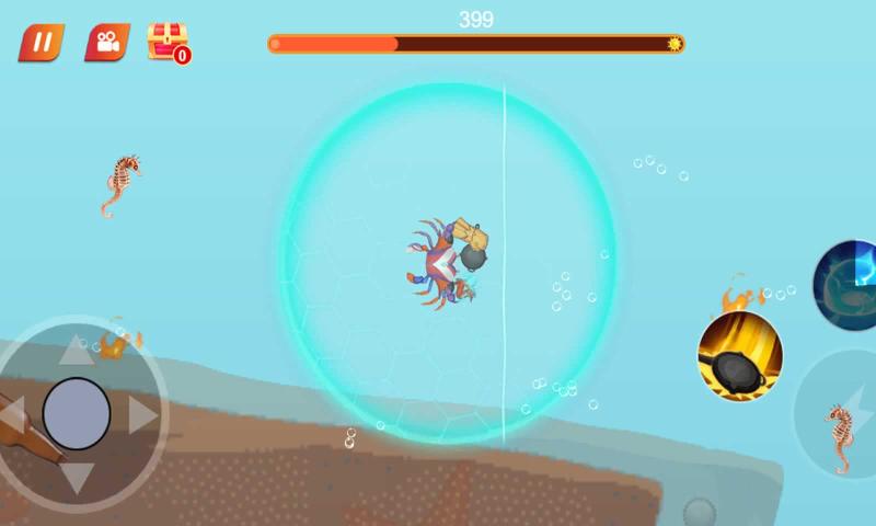 2、到处战斗,你需要成为螃蟹之王,征服这片大海,最终成为海王,拿到海底宝藏。