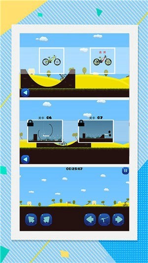 2、很简单的操作方式,通过控制屏幕中的几个按钮来灵活控制自行车的骑行方向;