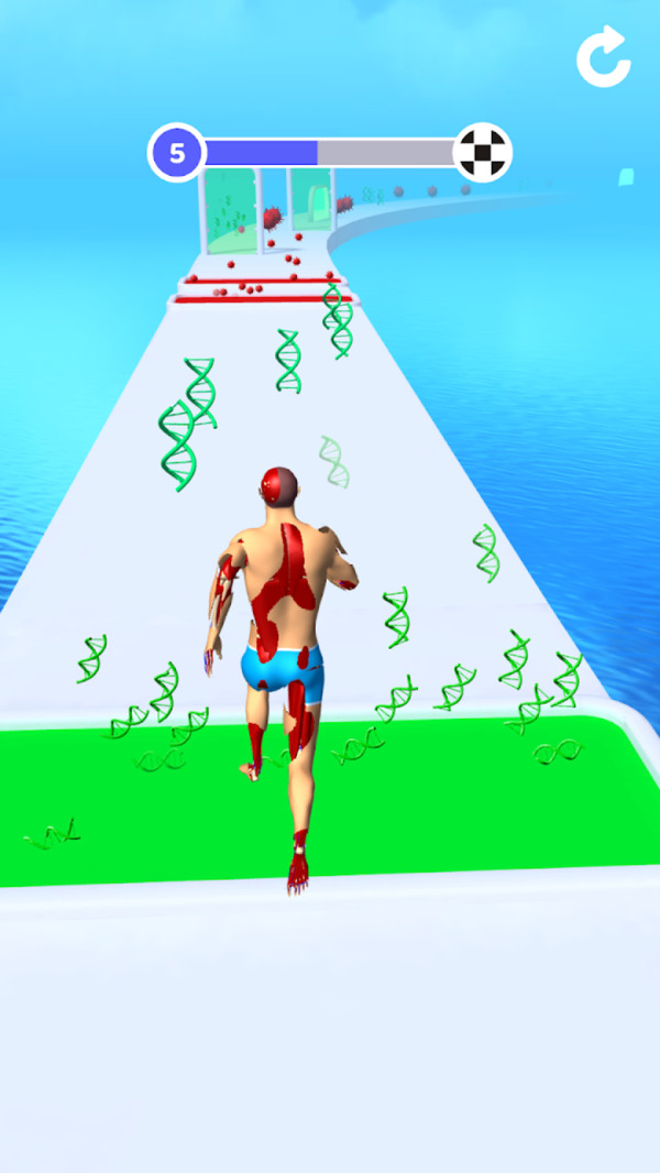 2、玩家需要收集路上的DNA,那样的话到达终点可以得到更多的分数;