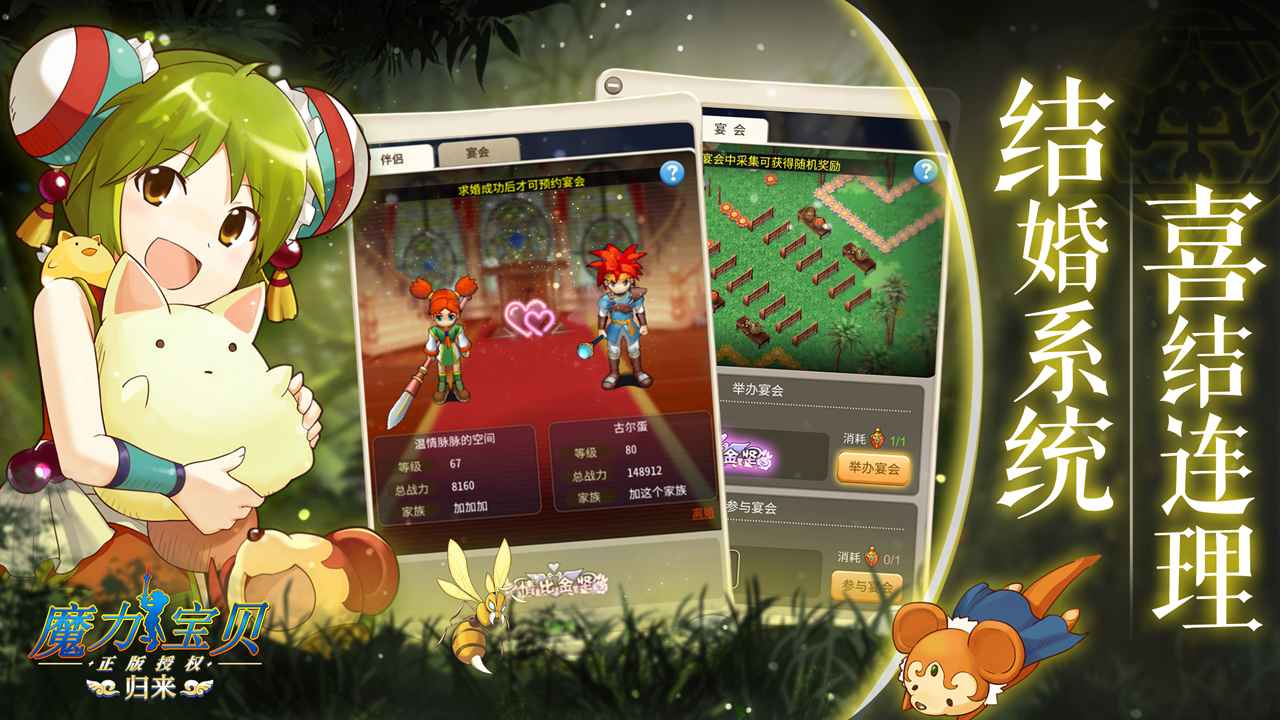真魔力宝贝归来手游是一款幻想世界冒险RPG手游。经典游戏IP震撼回归,和你的魔力宝贝一起再起进入到危机四伏的法兰城冒险,全新结婚系统让你找到自己的另一半共同冒险,众多老玩家回归齐聚一堂十分热闹,巨大的冒险地图超多宠物等你捕捉!