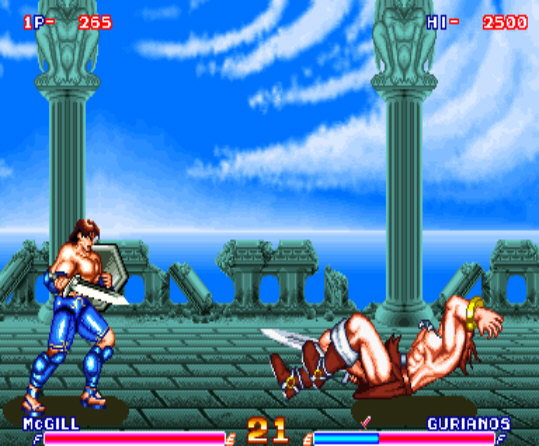 古罗马对决是款经典的格斗类街机游戏,在游戏里你将回到古罗马帝国时代,穿着各式各样的铁甲、武器和盾牌,看起来非常的有战斗力。游戏的技能也是非常丰富的,快拿去手中的武器去古罗马战场对决吧。