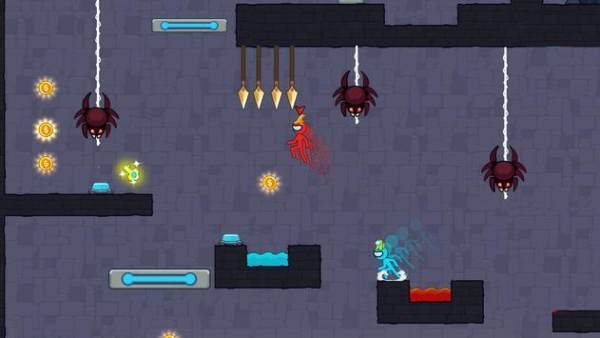 火柴红蓝森林人,全新版本下的森林冰火人,依旧是原来的设定,但是在每一关的场景进行了扩大;